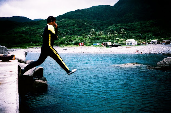 我站在碼頭上,來來回回躊躇好久,越是猶豫越是害怕,從沒想過自己會這麼軟弱,連跳水都不敢,可能年紀大了…最後還是成功的跳下去了,但是不知道是來回幾次之後的事了,這也造成Mr.S.H無法準確的抓到按下快門的時間點,下水之後的我竟然還尖叫,導致我鼻子裡灌進不少海水